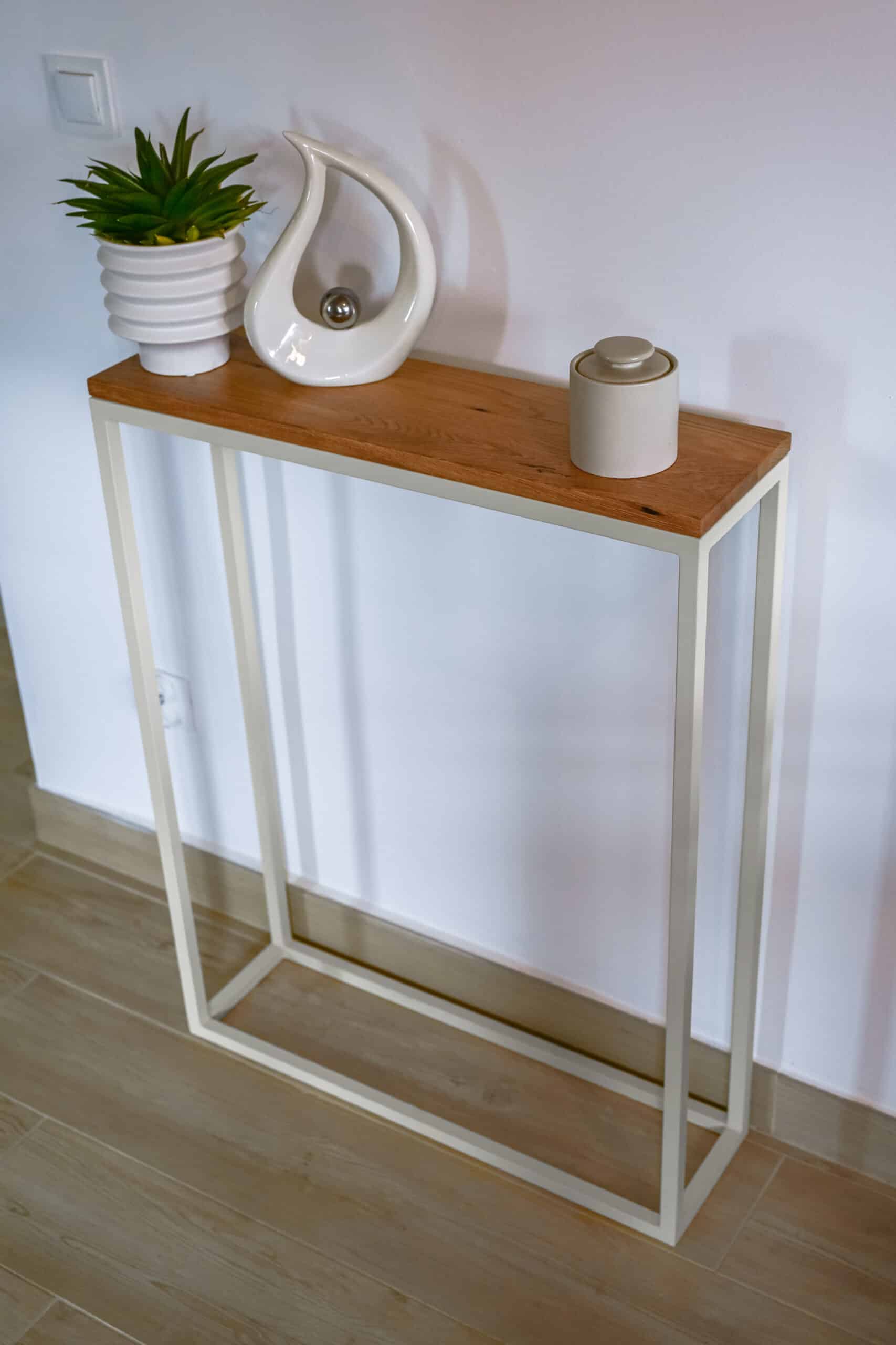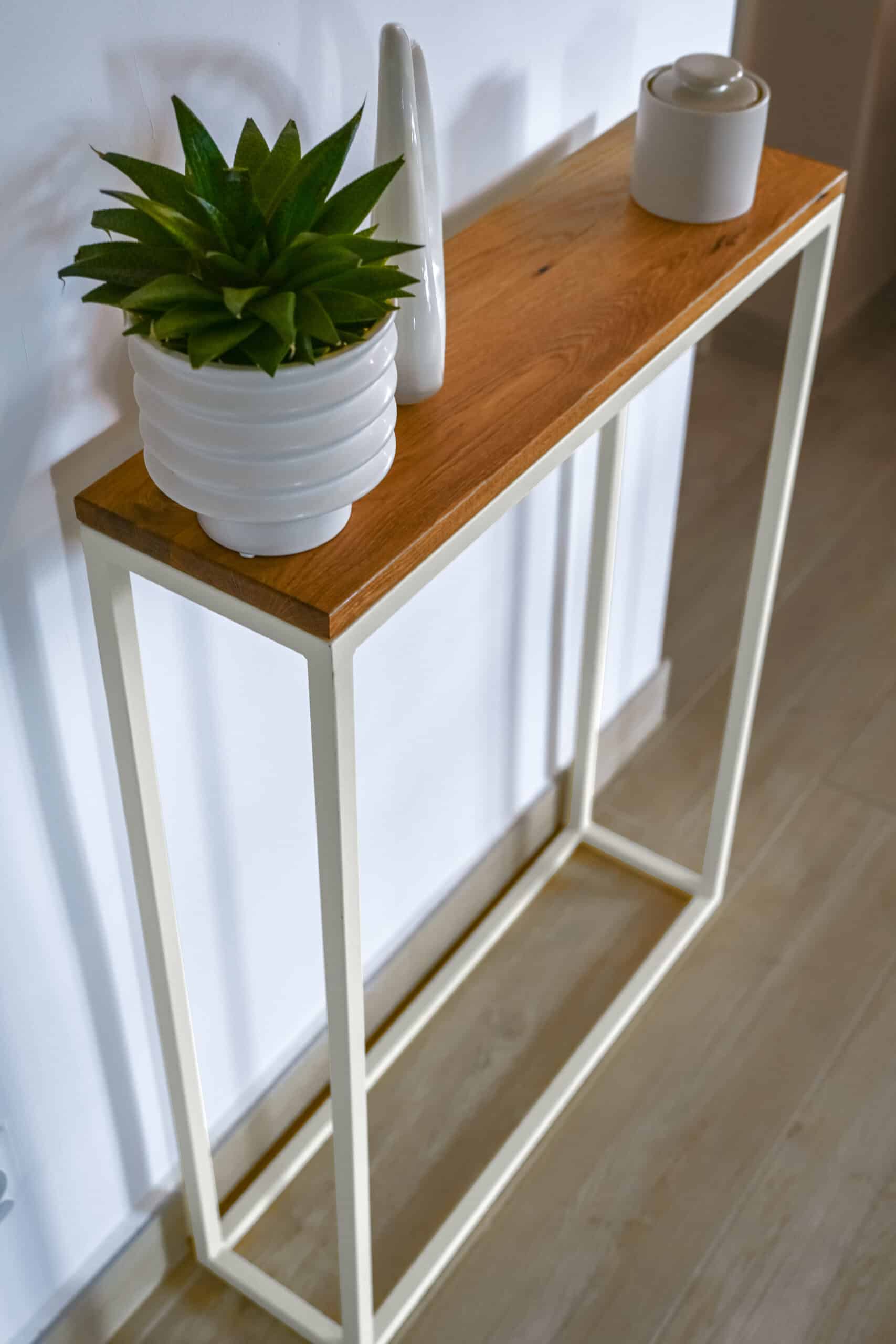 Delikatna harmonia – konsola Linea Wood w kolorze kaszmirowym z blatem z drewna dębowego