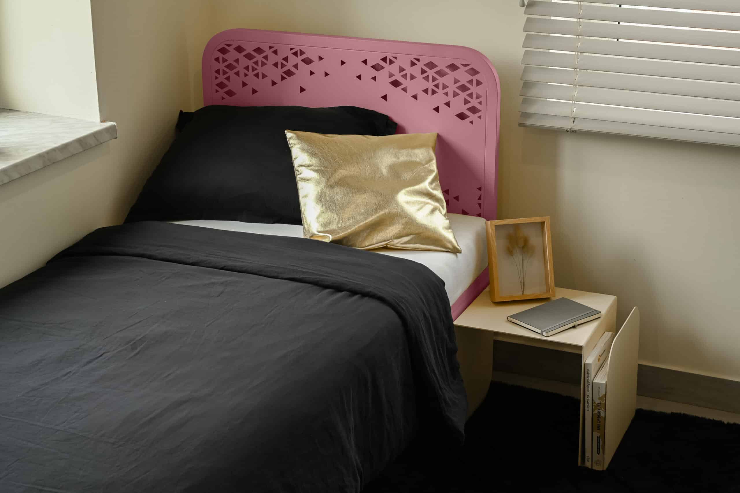Łóżko pojedyncze Triora w kolorze jasnoróżowym – romantyczny urok przytulnej sypialni.
