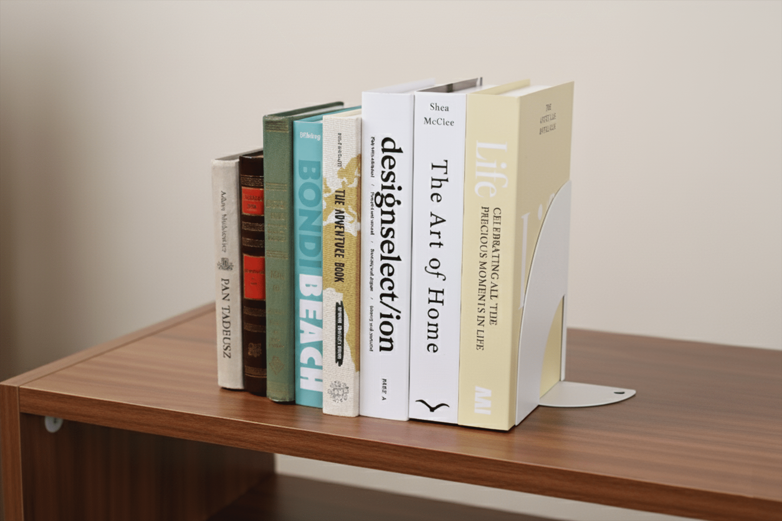 Dome to podpórka do książek o miękkiej, kopułowej linii. Stabilna, metalowa i zaprojektowana tak, by utrzymać porządek bez wizualnego ciężaru.