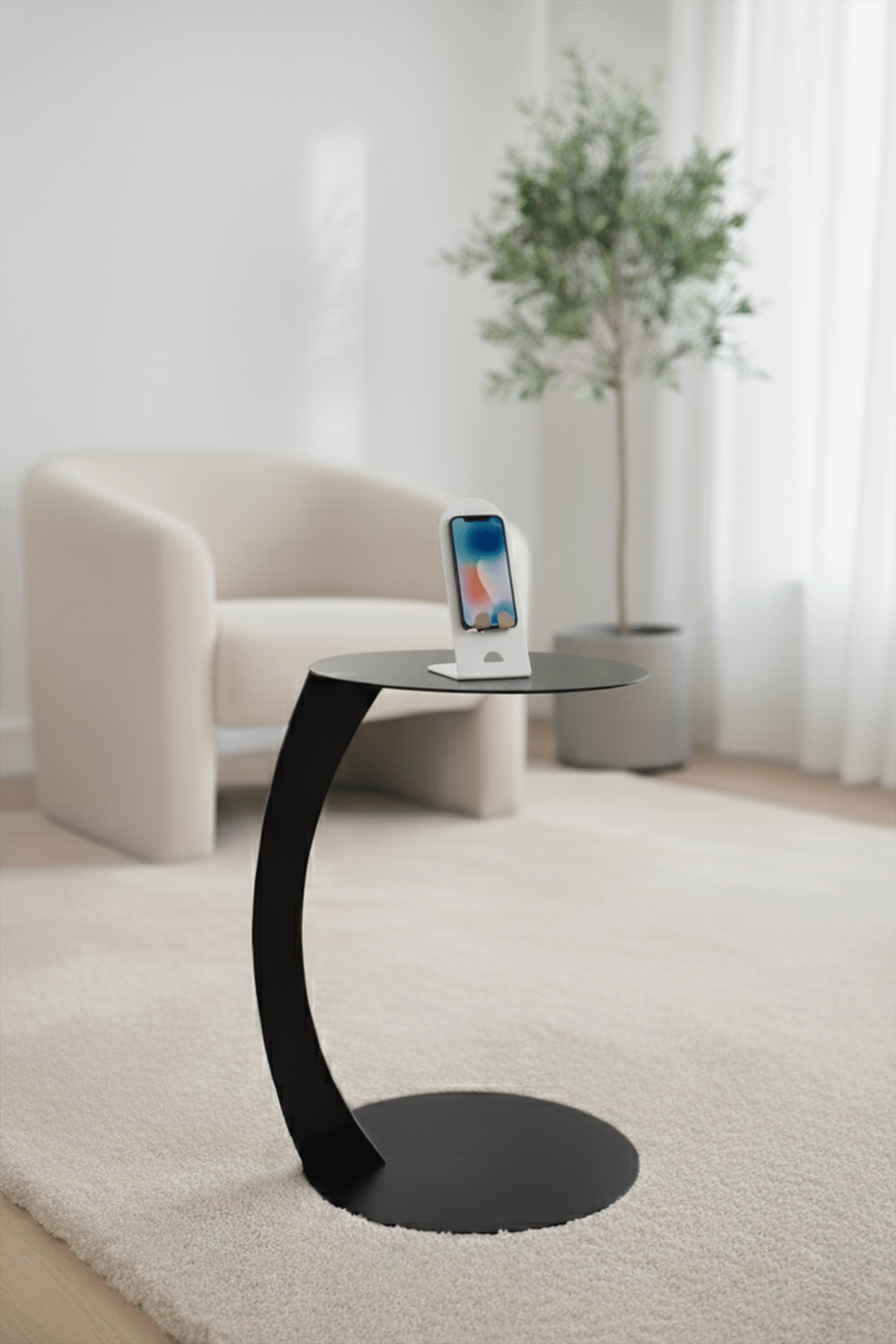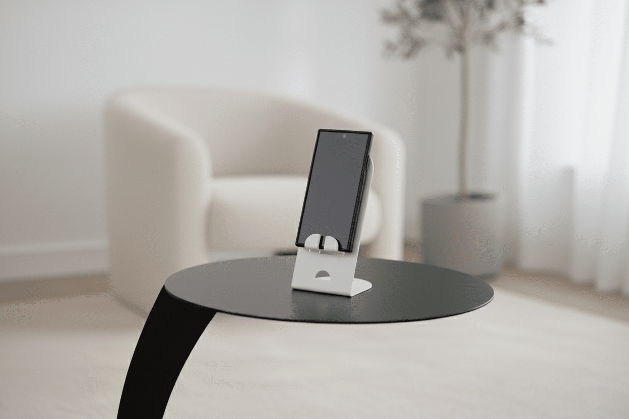 Delikatny kolor dodaje przestrzeni ciepła i porządku — tworzy miejsce na telefon tam, gdzie zwykle odkładasz go mimochodem. Loop jest subtelnym dodatkiem, który porządkuje codzienność bez zbędnego rozgłosu.
