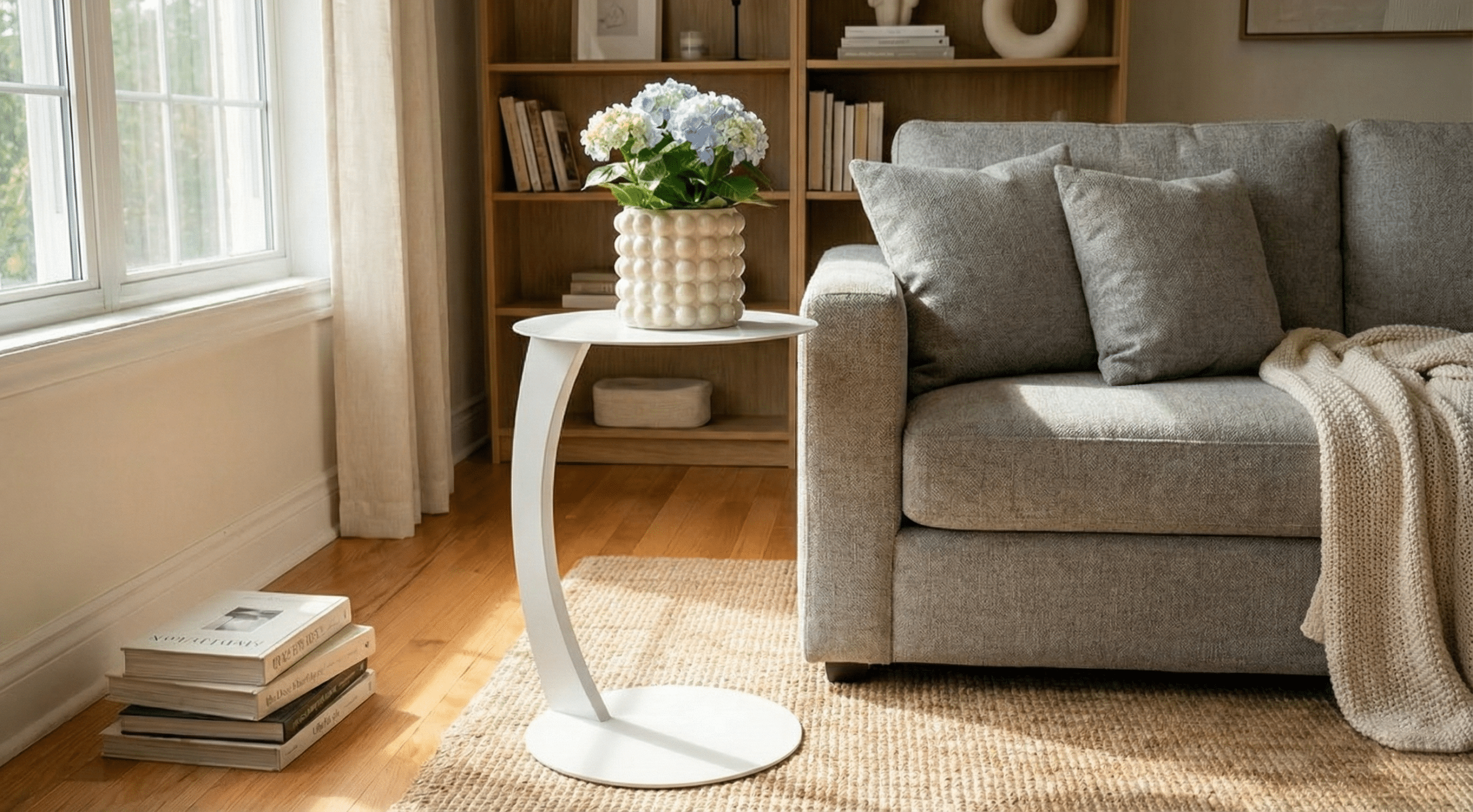 Stolik Mirka w kolorze kaszmirowym to wszechstronny dodatek do każdego domu. W sypialni pełni funkcję eleganckiego stolika nocnego, idealnego na książkę, budzik i ulubioną lampkę nocną. W salonie, ustawiony obok sofy, oferuje wygodną powierzchnię na pilota, przekąski lub dekoracyjny wazon ze świeżymi kwiatami – pomagając stworzyć spójną i spokojną atmosferę.