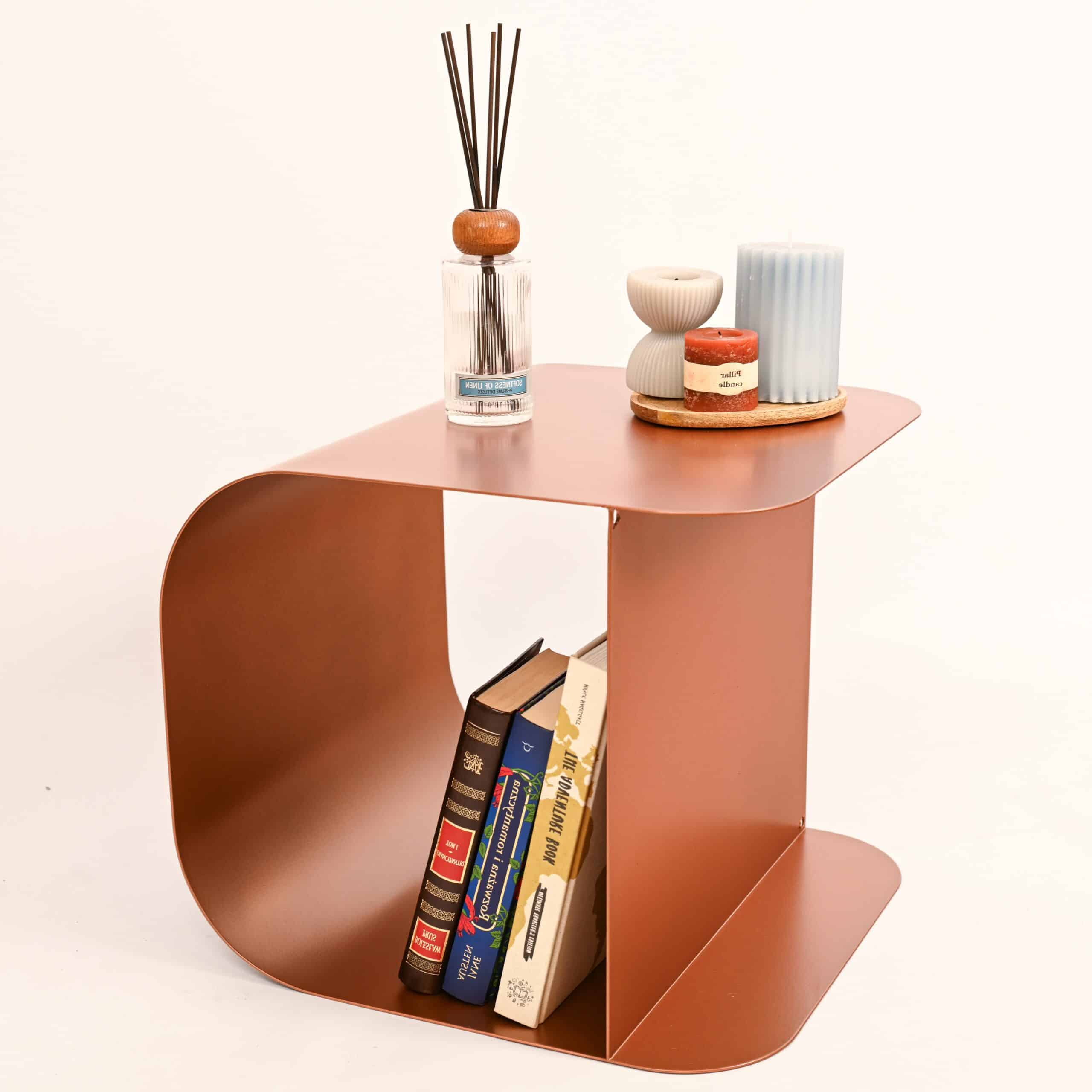 Olśniewająca wszechstronność – metalowy stolik kawowy Tinky w kolorze miedzianym.